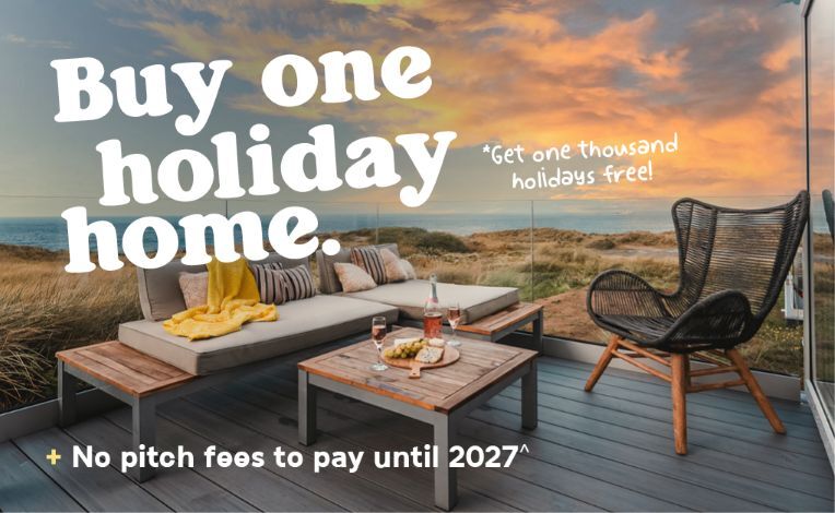 Kickstart your getaway dreams with a new or pre-loved holiday home and enjoy no pitch fees until 2027 plus a 3-year warranty for hassle-free relaxation.